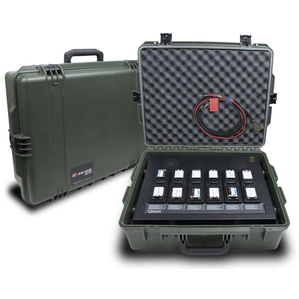The AdvanceCase™ Charger is an essential component for any Emergency Preparedness Program and other remote deployment applications. The AdvanceCase™ Charger is supplied in a rugged, protective case made of lightweight HPX Resin with double layered soft grip handles and double pad lockable clasps. It is designed to withstand extreme temperatures and harsh environments. The portable design offers versatile application, MilSpec approved and is waterproof, dustproof and crushproof. Powered by 12-24 VDC connection, the AdvanceCase™ Charger is a perfect solution to meet your in-field battery charging requirements.